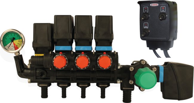 • Groupe 3 voies série 863 avec retour compense + vanne générale électrique + vanne de retour manuelle + vanne de retour électrique + manomètre + boîtier de commande.