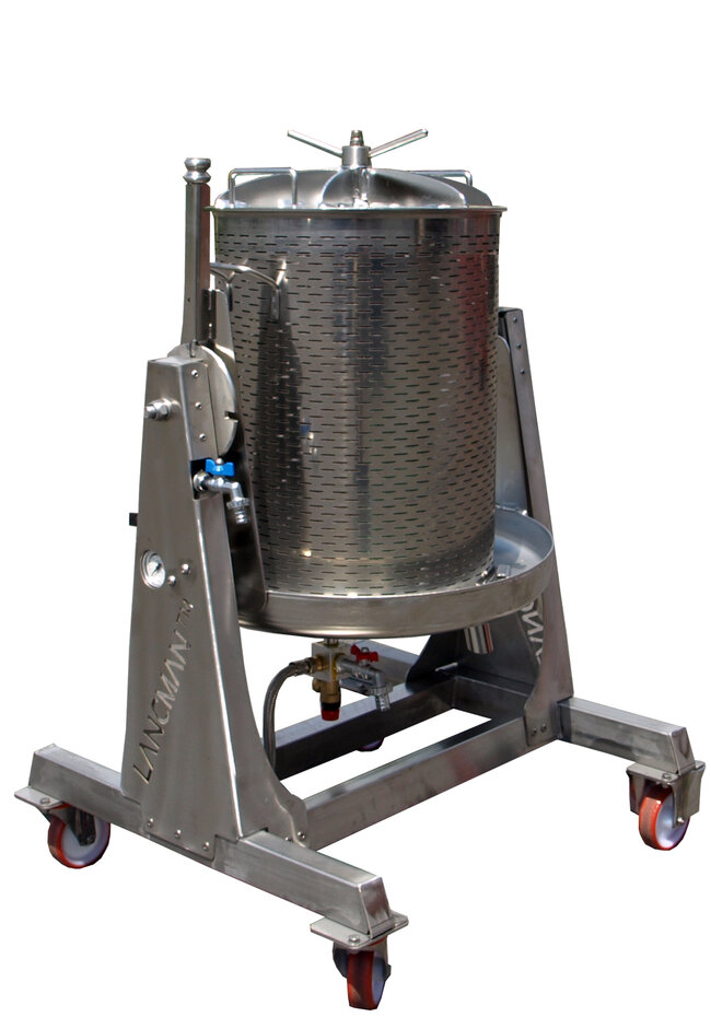 • Nos hydropressoirs LANCMAN à châssis basculant, disponibles en capacités de 80 à 250 litres, sont conçus pour une extraction optimale du jus de fruits (pommes, raisins, poires…) grâce à un système de pression hydraulique à l’eau, simple, puissant et sécurisé. Il vous suffit de raccorder la machine à une arrivée d’eau classique (type tuyau d’arrosage) : la pression est régulée automatiquement par manomètre, sans compresseur ni électricité. Dotés d’un châssis entièrement en inox AISI 304.