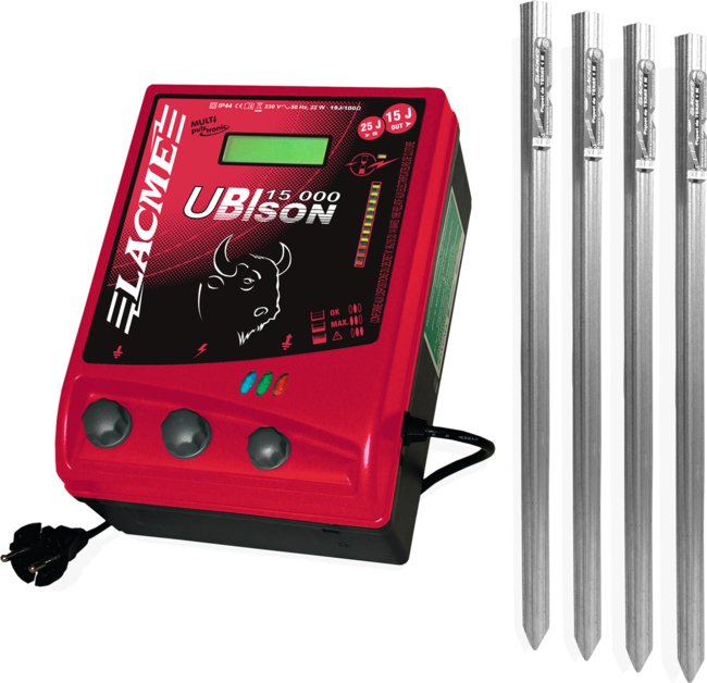 Electrificateur secteur 10000 V, 15 J délivrés. Technologie avancée, spécial clôtures très longues, noyées sous la végétation. Capable de délivrer le maximum de l'énergie autorisée sur la zone 0-500 ohm, en toute sécurité. Ecran digital. Livré avec 4 prises de terre
